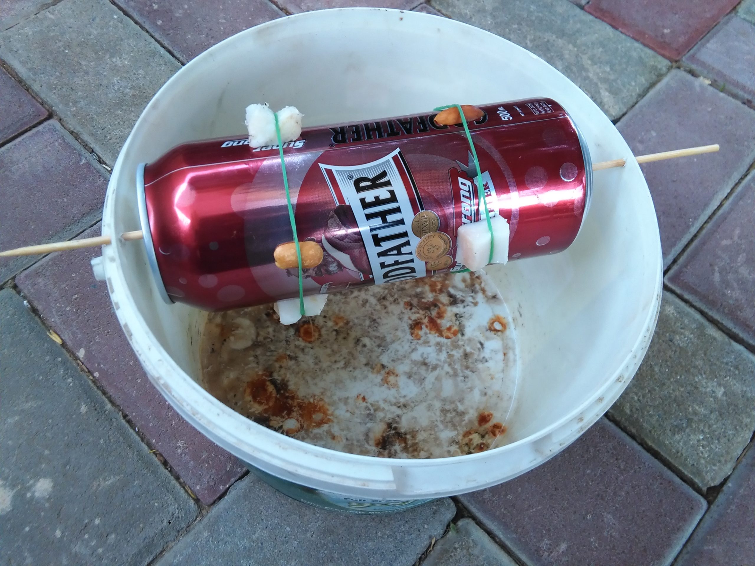 Из металлического или пластмассового ведра можно сделать многоразовую ловушку. Работать она будет по принципу качелей. А изготовить ее можно из любых подручных материалов: