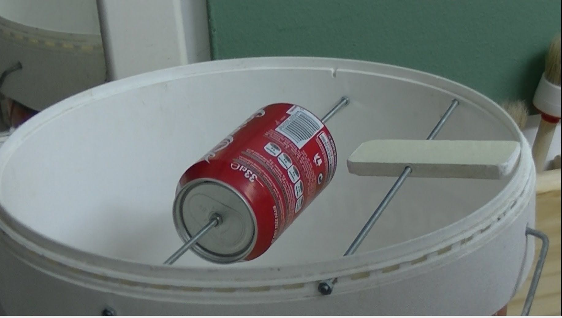Для того, чтобы изготовление такой ловушки увенчалось успехом, необходимо к краю ведра приставить под нужным углом деревянную планку. Причем учесть, чтобы по длине она была таковой, чтобы мышь, дойдя до ее края, смогла потянуться к банке и попытаться спуститься на нее. Свободно вращающаяся данная часть опрокинет грызуна в ведро. Поэтому данную разновидность конструкций можно отнести к гуманно воздействующим на мышей.