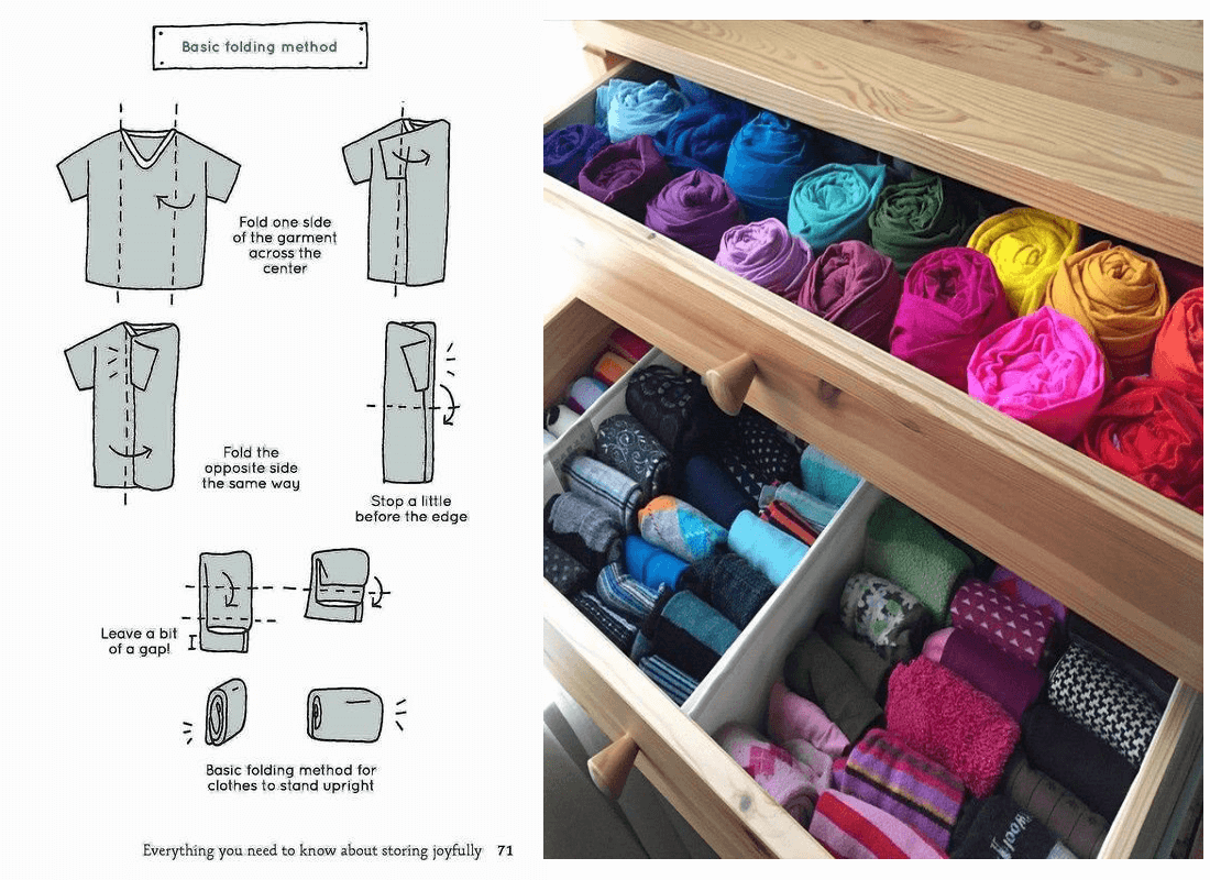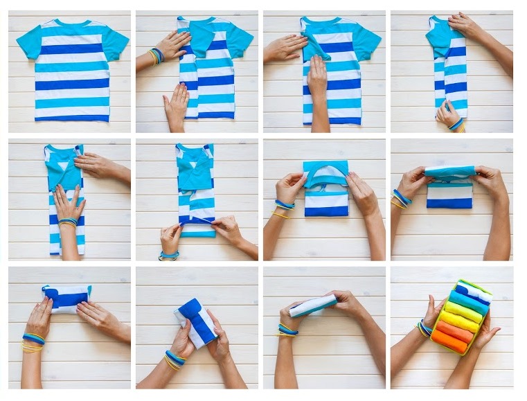 Принцип укладки наверх выглядит чуть по-другому. Абсолютно все те же действия, только рукав загибается кверху и после этого складывается пополам. На YouTubе много видео, показывающих этот способ на практике.Так что особых проблем с ним быть не должно. Если не понятно на словах – в большинстве видео все наглядно показывается и объясняется.